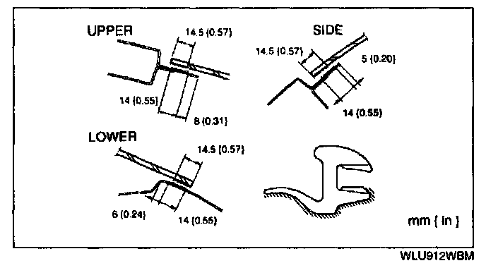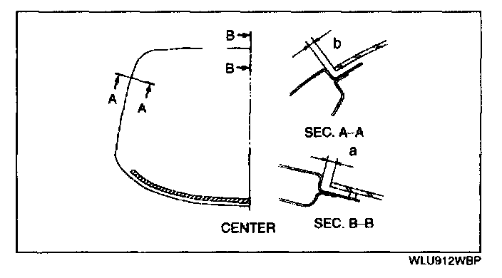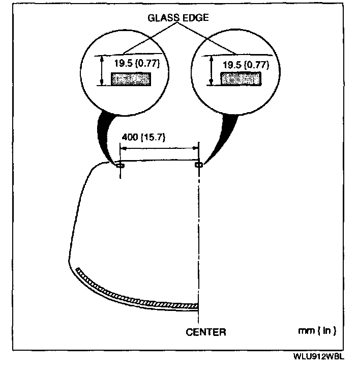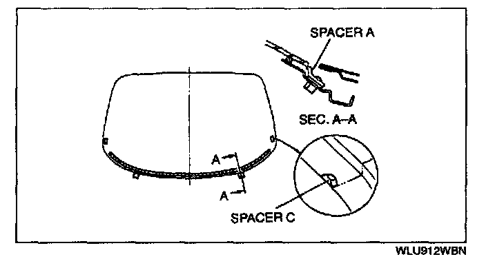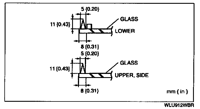 8. Temporarily install the glass onto the body and adjust the glass-to-body clearance as indicated.