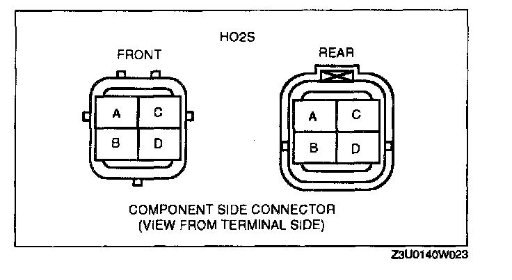 - GND circuit (HO2S connector terminal D and PCM connector terminal 94 (Front), 93 (Rear) to GND)