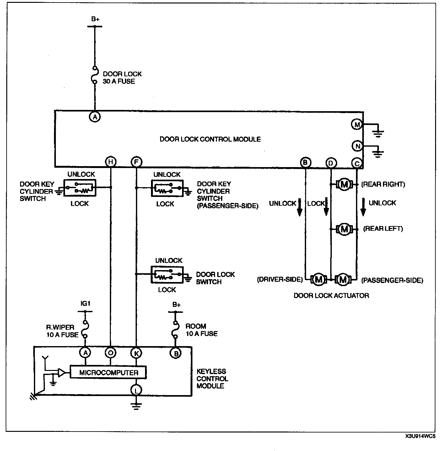 Power Door Lock System Wiring Diagram: