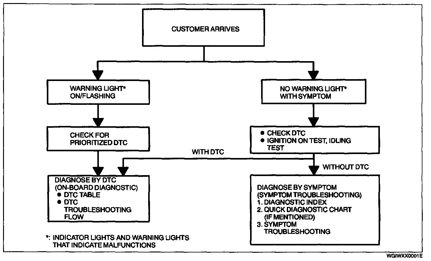 - The quick diagnosis chart lists diagnosis and inspection procedures to be performed specifically relating to the cause of the malfunction.