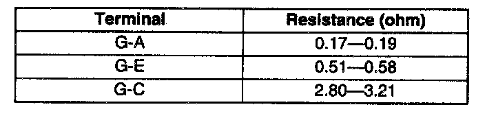 3. Verify that the resistance between the terminals of the resistor is as indicated in the table.