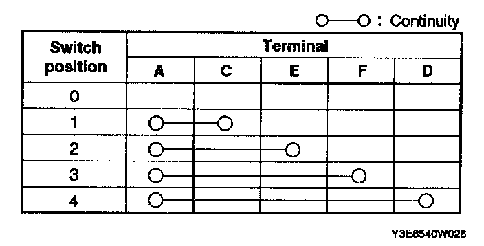 2. Inspect for continuity between the tan switch terminals using an ohmmeter.