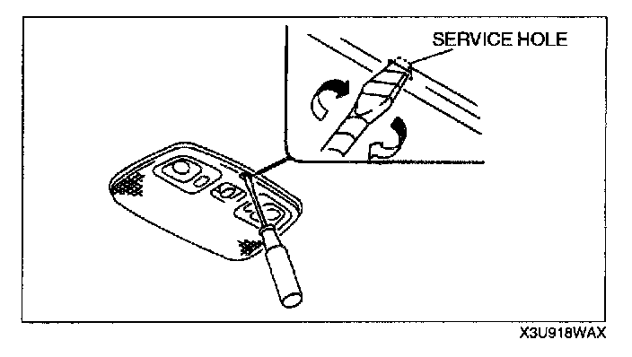 1. Insert a tape-wrapped, flathead screwdriver into the service hole.