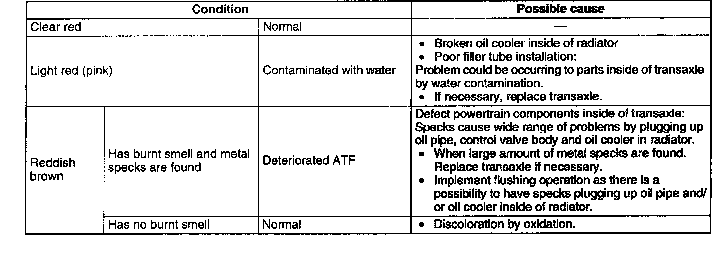 Automatic Transaxle Fluid (ATF) Condition Inspection1. One way of determining whether the transaxle should be replaced is by noting:
