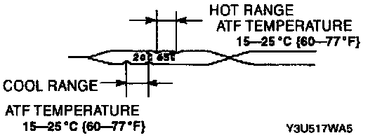 5. Inspect the ATF level before warming up the engine. In this case, use the cool (20°C (68°F)) range.