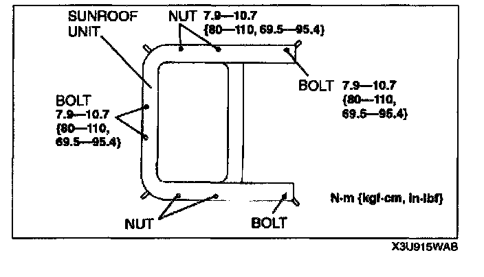 6. Remove the bolts and nuts, and then remove the sunroof unit.