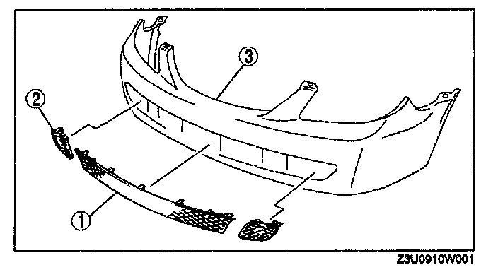 FRONT BUMPER DISASSEMBLY/ASSEMBLY1. Remove the radiator grille.