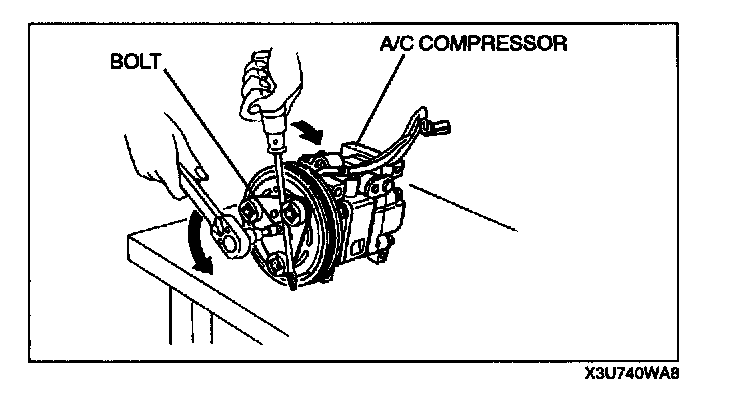 2. When installing a new A/C compressor body, replace the bolt.