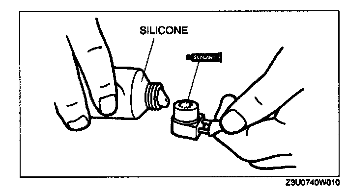 1. Apply approximately 1 g {0.04 oz} of silicone (Shin-Etsu Silicone KE-347W or similar)
