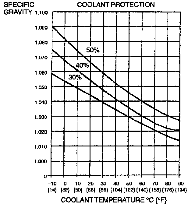 ENGINE COOLANT PROTECTION INSPECTION1. Measure the coolant temperature and specific gravity with a thermometer and a hydrometer