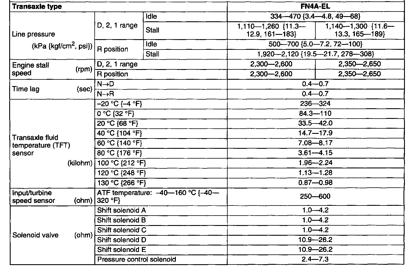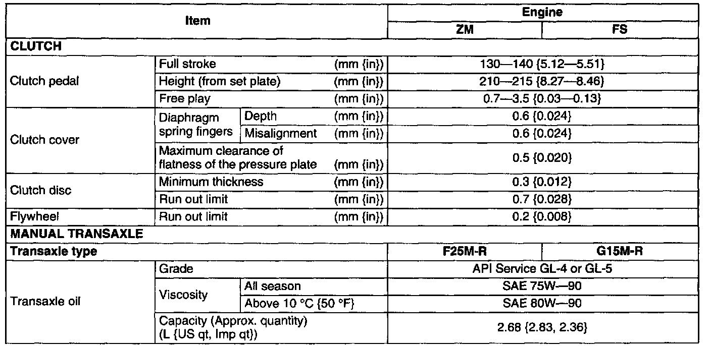TRANSMISSION/TRANSAXLE TECHNICAL DATA