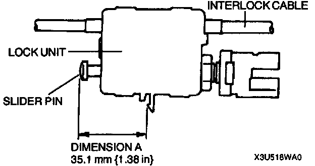 ^ If the slider pin protrusion is as specified below (dimension A) verify that the interlock cable moves freely in the lock unit.