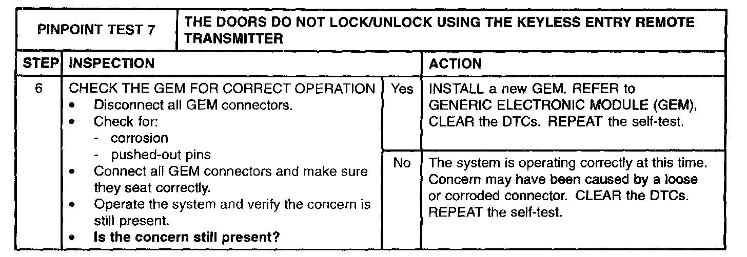 7: Doors Do Not Lock/Unlock Using the Remote Transmitter