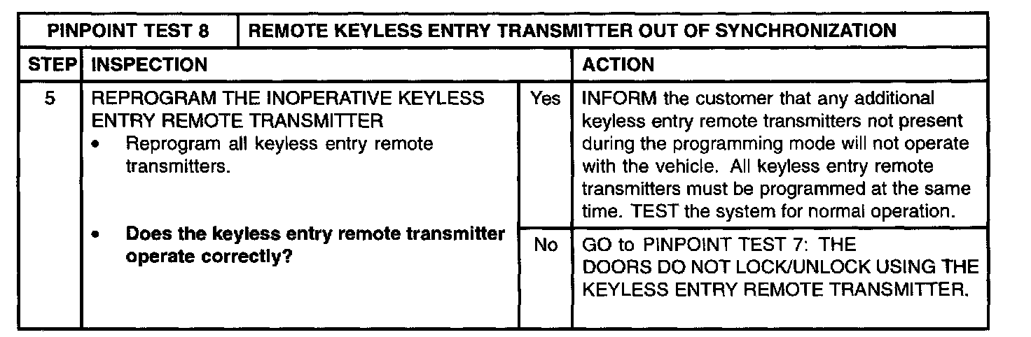 8: Remote Keyless Entry Transmitter Out of Synchronization