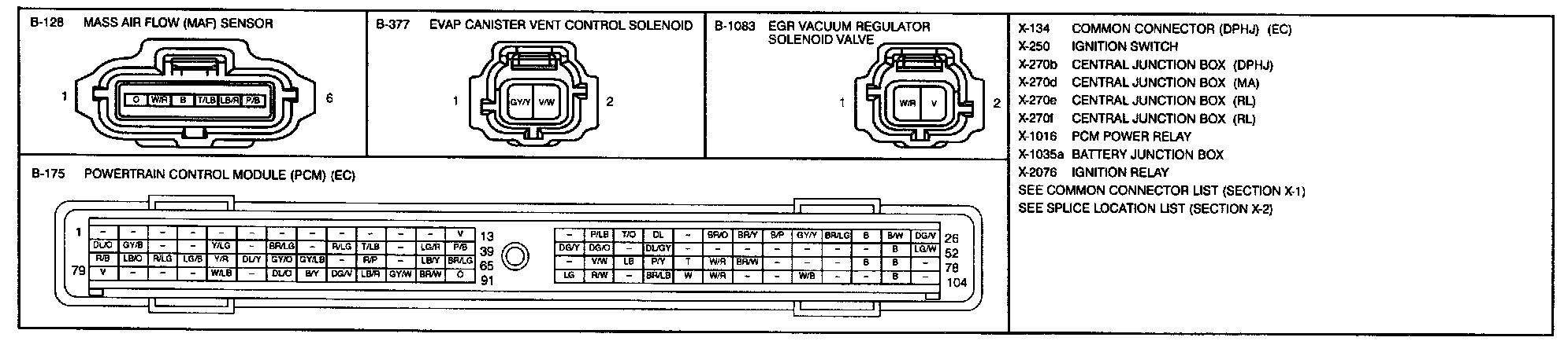 B-1e - Engine Control System Connectors: