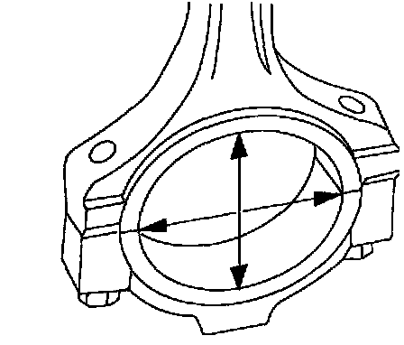 CONNECTING ROD- LARGE END BORE1. Measure the bore in two directions. The difference is the connecting rod bore out-of-round. Verify the out-of-round is within specification.