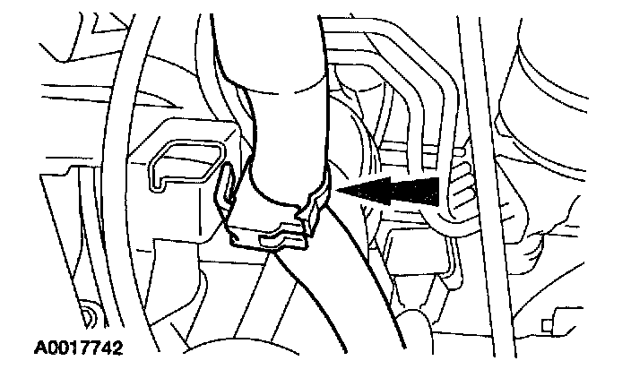4. Disconnect the main engine control sensor wiring. Remove the connector from the mounting bracket.
