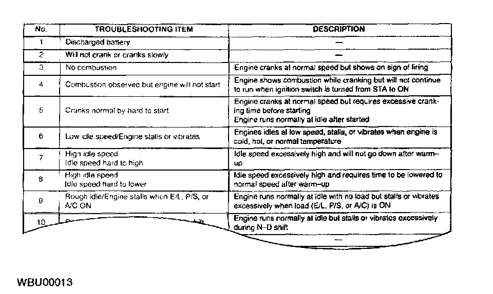 - The exact malfunction symptoms can be selected by following the index.