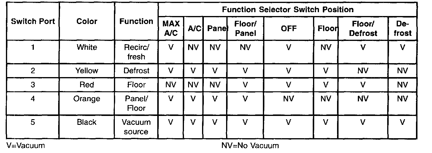 - The defrost blend door is at full vacuum while the footwell blend door is at no vacuum, closing both doors.