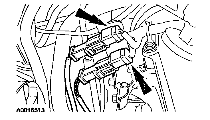 2. Disconnect the heated oxygen sensor (HO2S) and the catalyst monitor sensor electrical connectors.