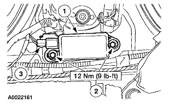 WARNING: Vehicle sensor orientation is critical for proper system operation. If a vehicle equipped with an air bag supplemental restraint system (SRS) is involved in a collision, inspect the sensor mounting bracket and wiring pigtail for deformation. Replace and properly position the sensor or any other damaged supplemental restraint system (SRS) components whether or not the air bag is deployed.