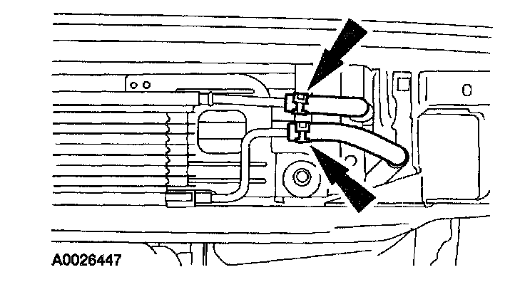 8. Disconnect and remove the integral to auxiliary cooler tube.