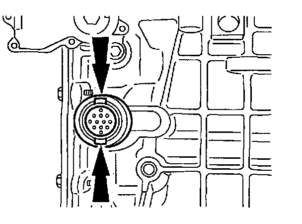 1 Release the retaining tabs and push the connector through the transaxle case.