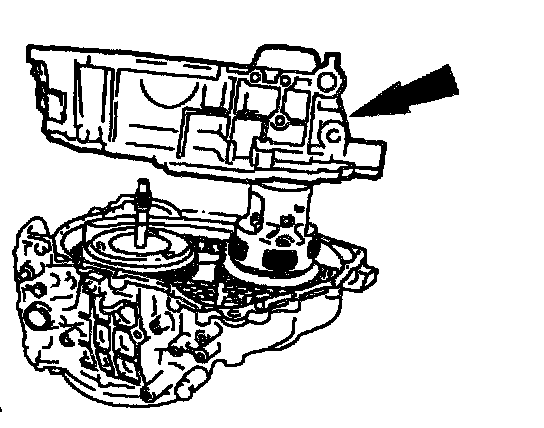 Note: The torque converter is filled with fluid. Position it on a table so that fluid will drain out of the torque converter into a drain pan.