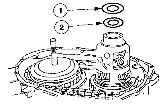 Note: The thrust bearing may adhere to the reverse/overdrive sun gear and shell.