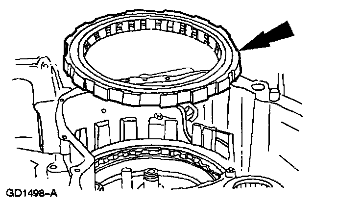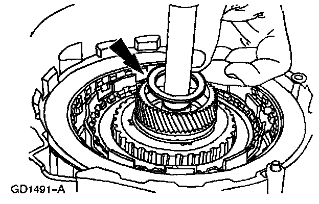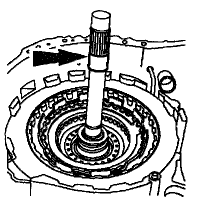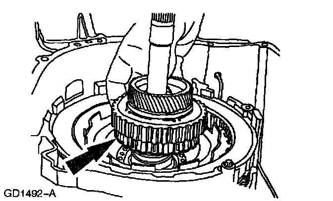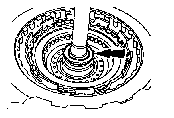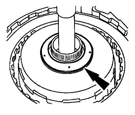 Note: The turbine shaft thrust bearing may adhere to the forward one-way clutch and low intermediate sun gear.