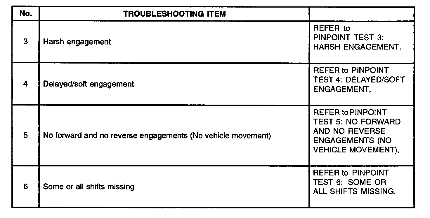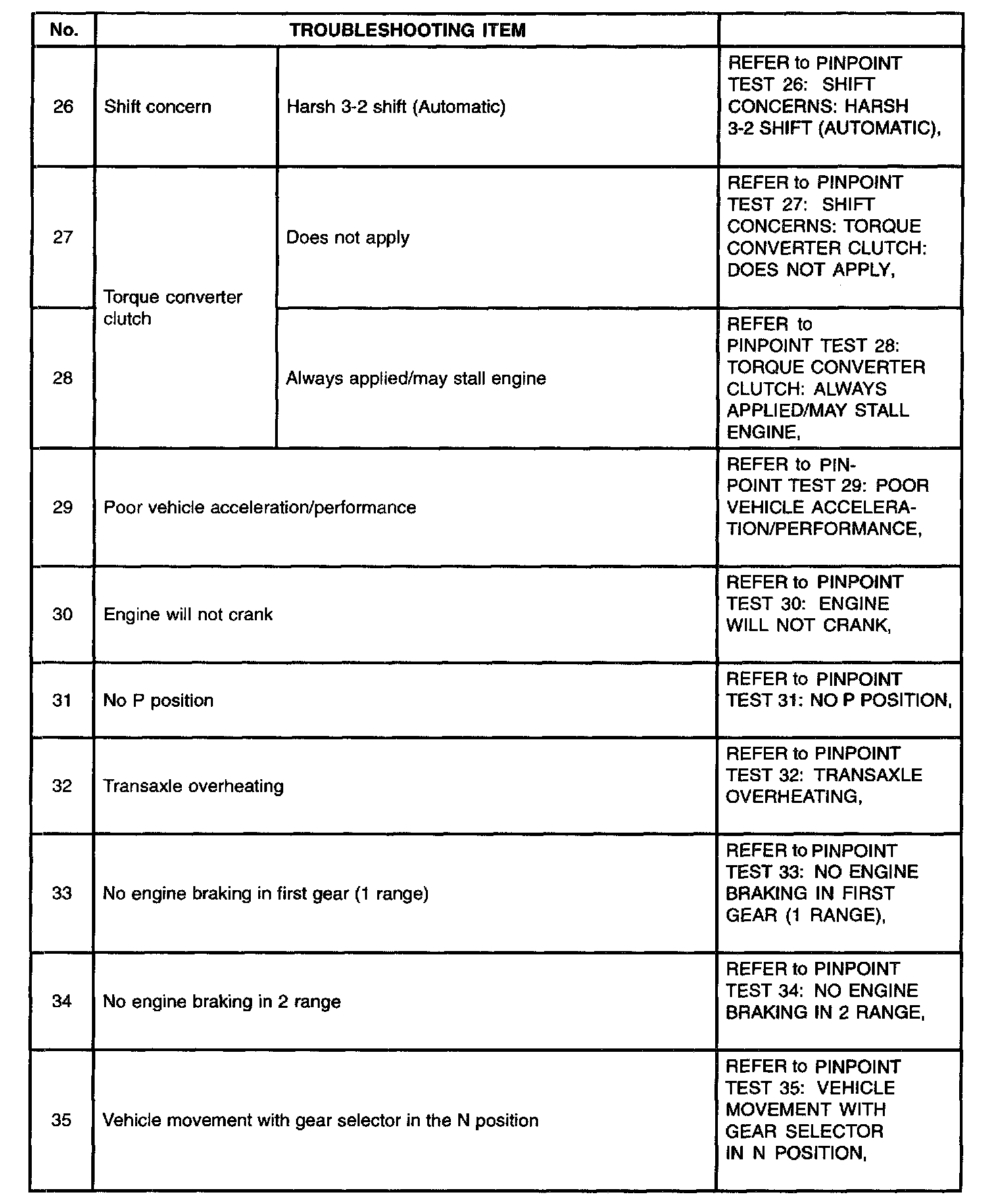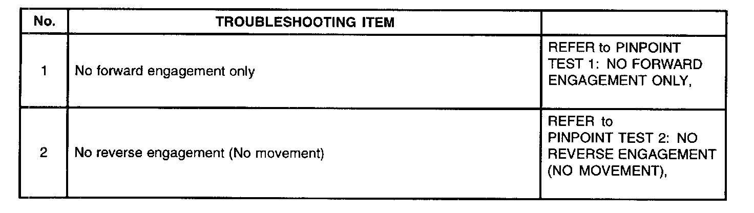 AUTOMATIC TRANSAXLE TROUBLESHOOTING INDEX