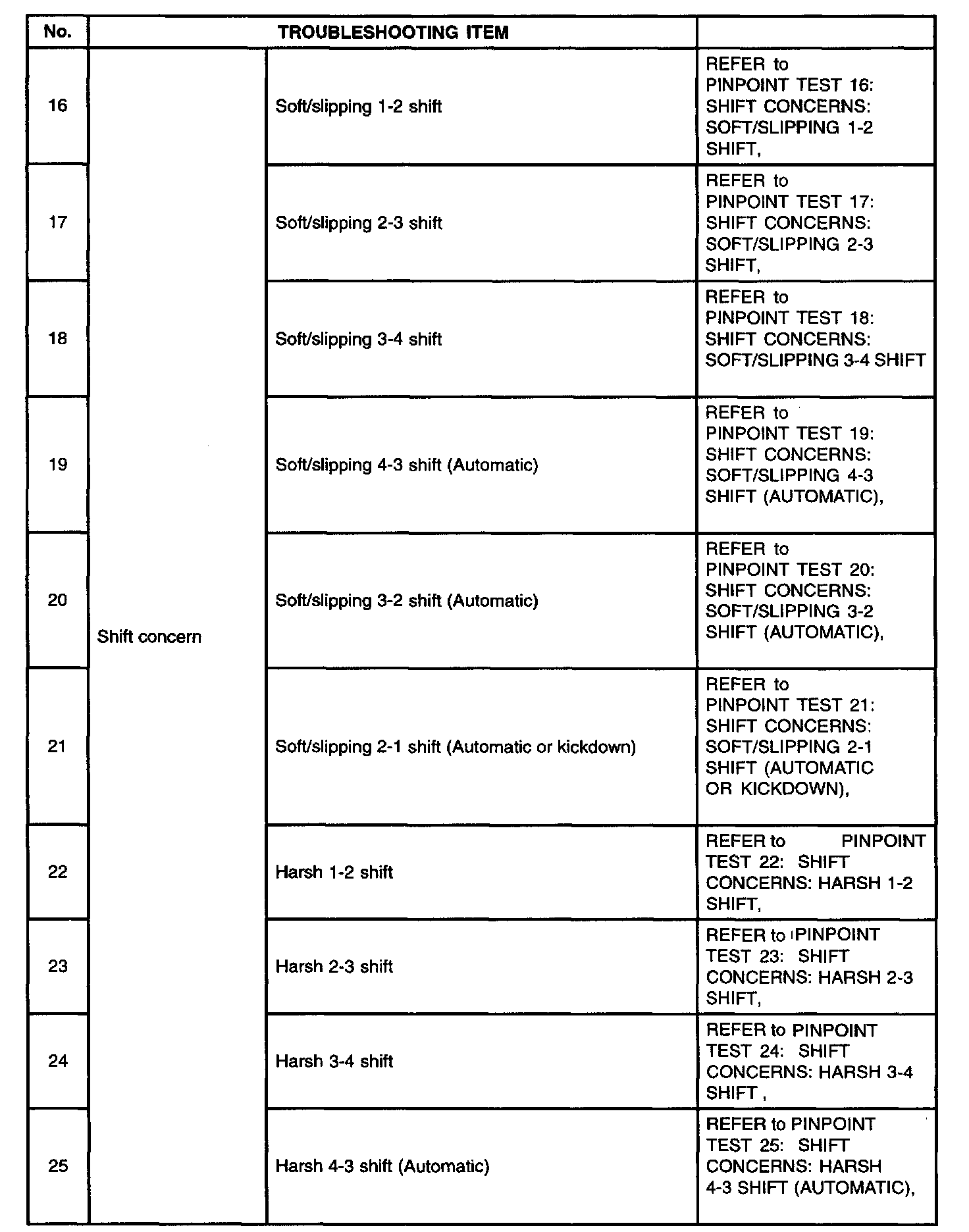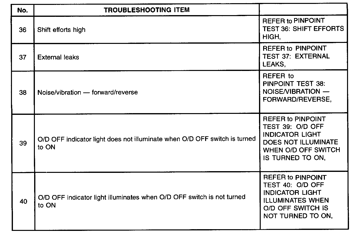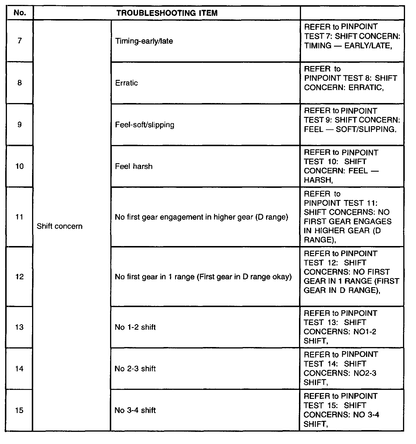 AUTOMATIC TRANSAXLE TROUBLESHOOTING INDEX