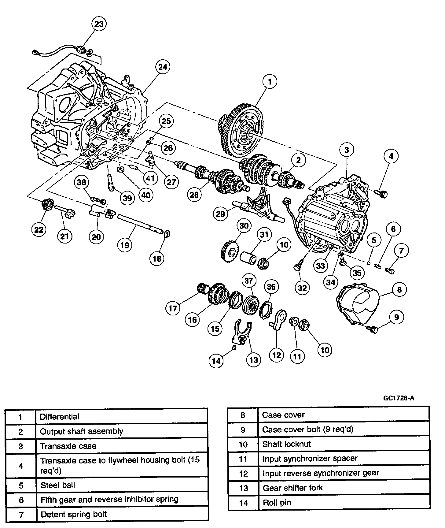 Note: Transaxle case side shown, flywheel housing side similar.