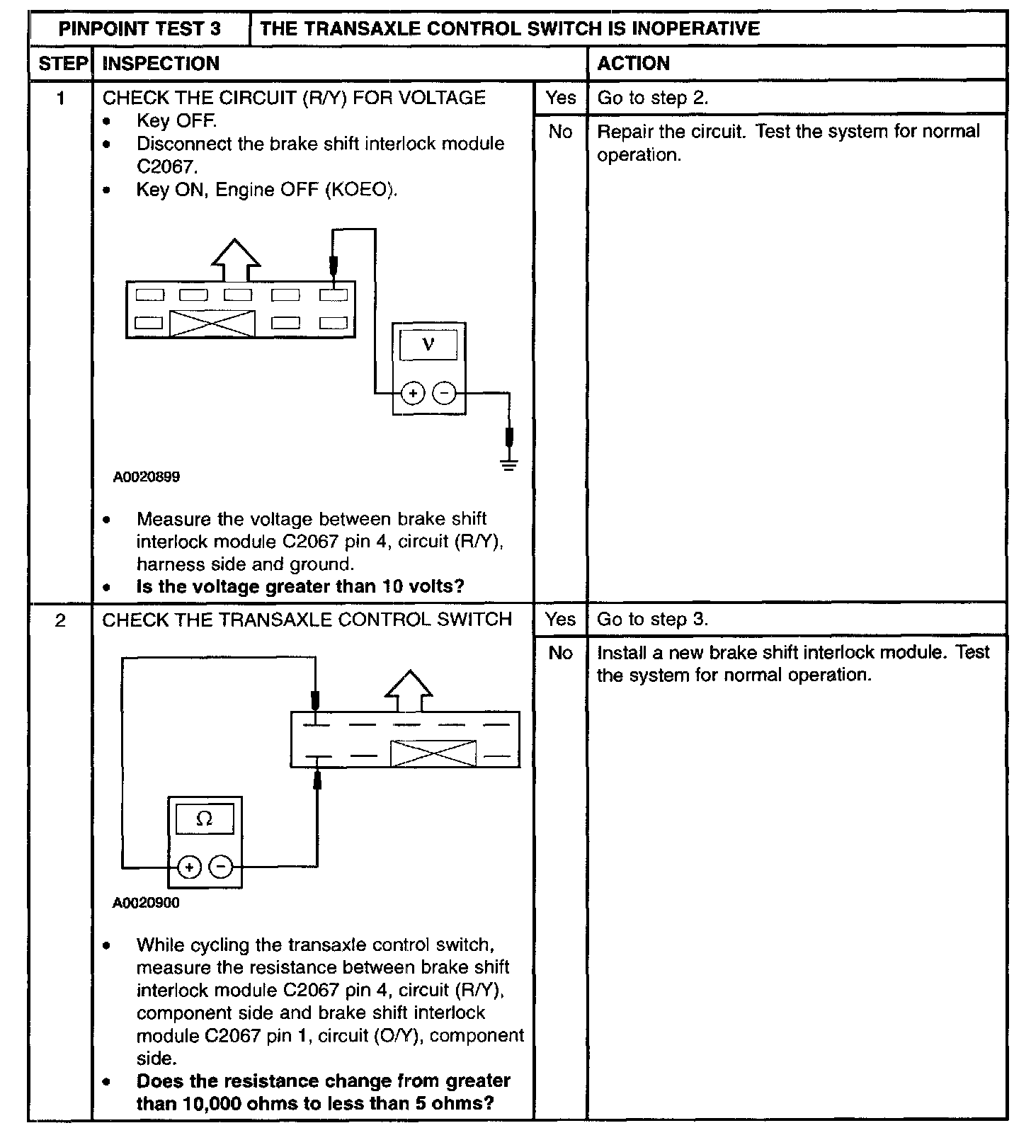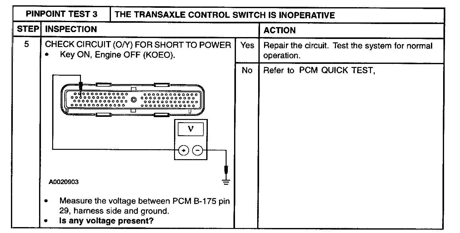 Pinpoint Test 3: the Transaxle Control Switch Is Inoperative