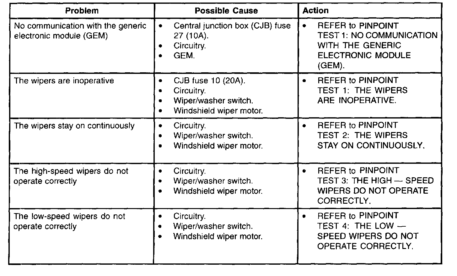 Troubleshooting Index - Wipers And Washers (Part 1):
