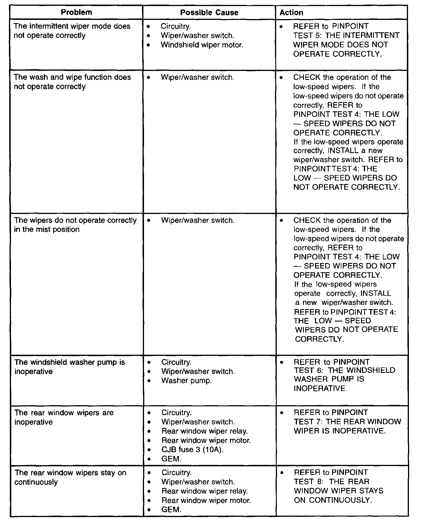 Troubleshooting Index - Wipers And Washers (Part 3):