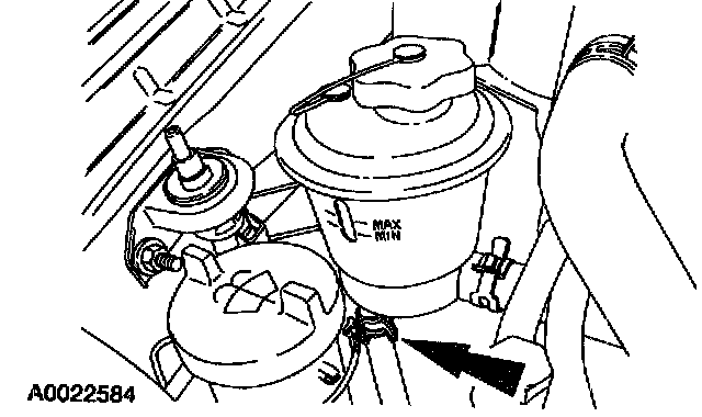 2. Disconnect the power steering return hose. Plug the reservoir.