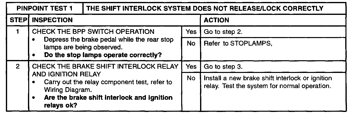 Pinpoint Test 1: Shift Interlock System Doesn't Release/Lock