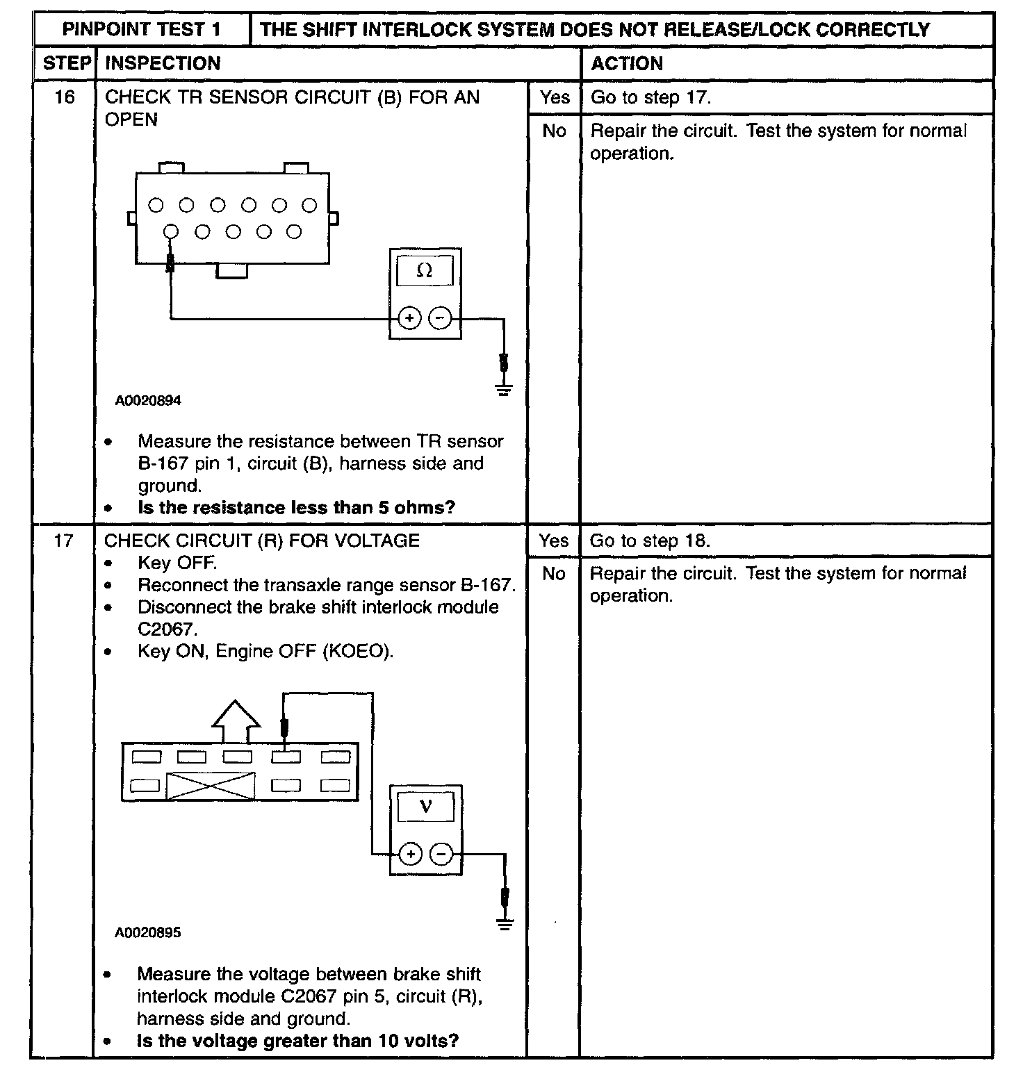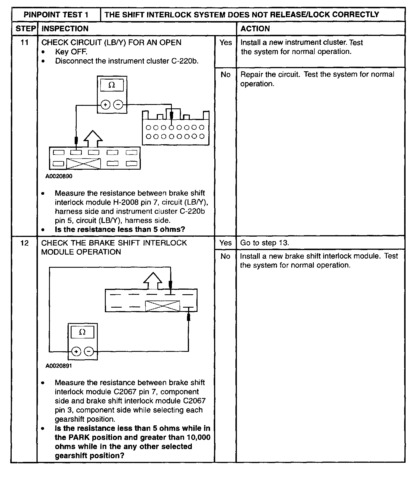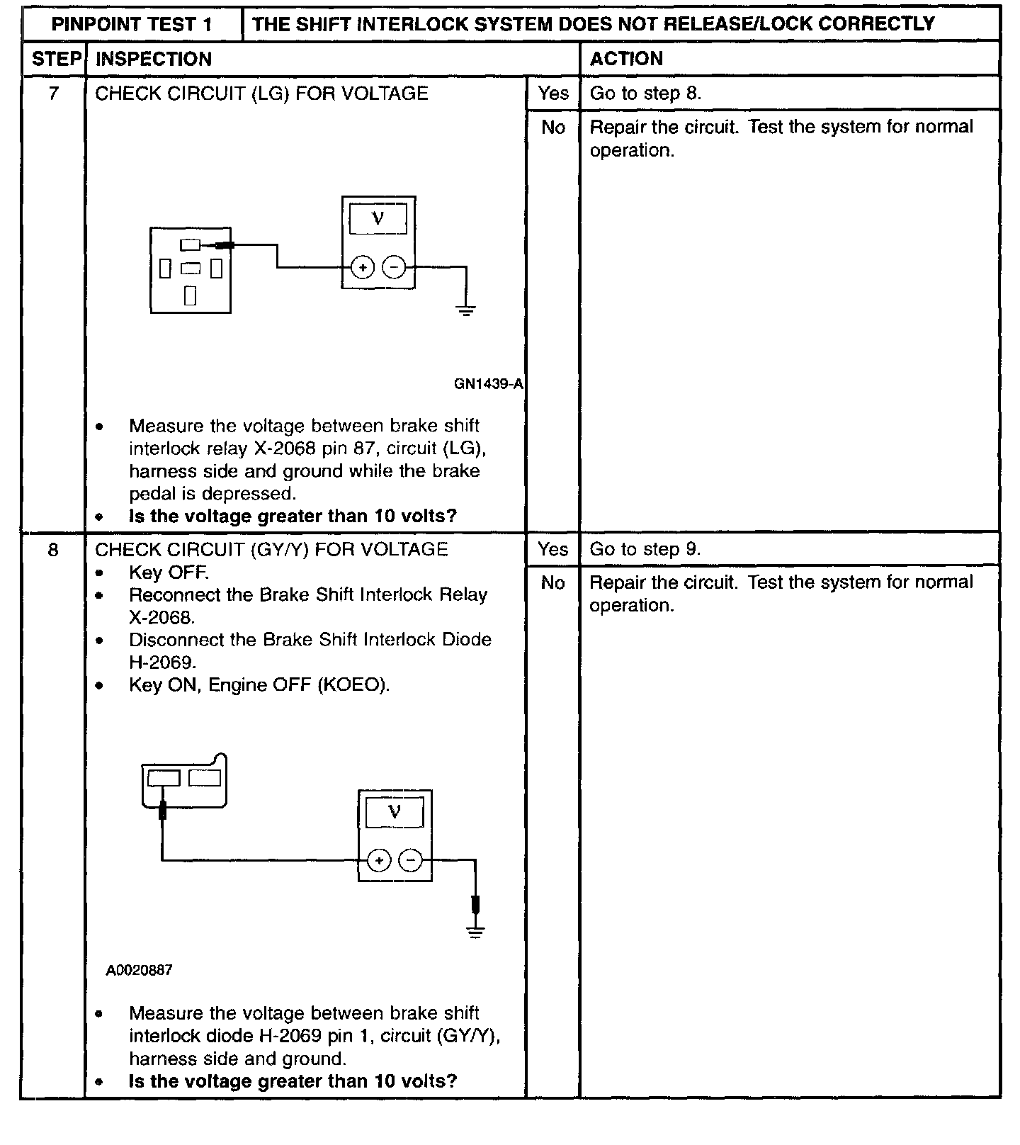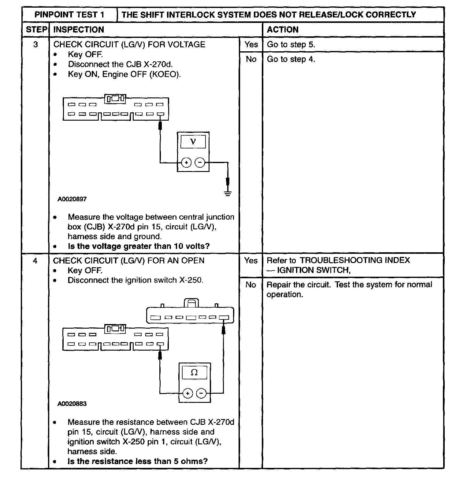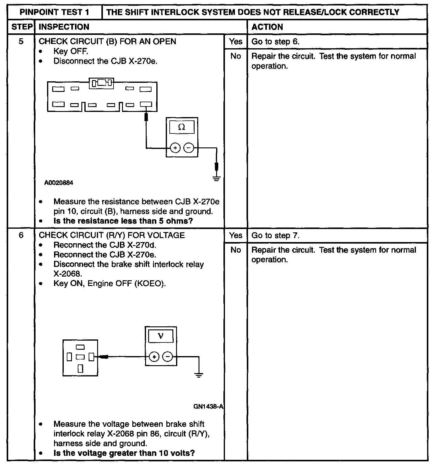 PINPOINT TEST 1: THE SHIFT INTERLOCK SYSTEM DOES NOT RELEASE/LOCK CORRECTLYStep 1 and 2