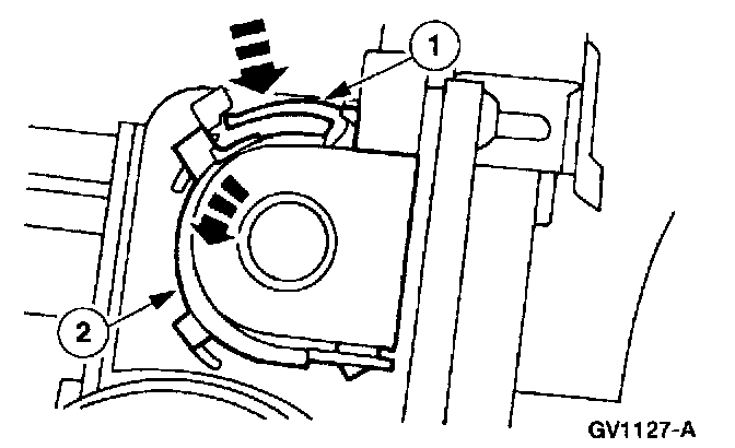2. Squeeze the tabs and disconnect the cruise control cable from the bracket