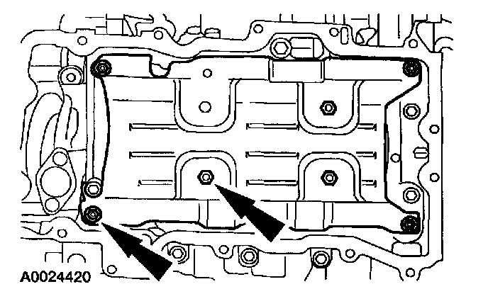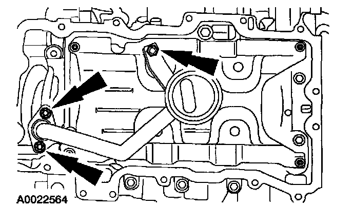 29. Remove the bolts, nut and the oil pick up tube and screen.