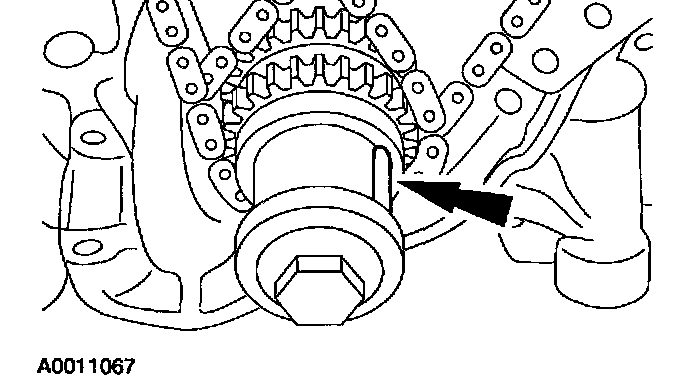 37. Rotate the crankshaft clockwise to position the crankshaft keyway in the 11 o'clock position and position the camshafts in the correct position. This will position the number one cylinder at Top Dead Center (TDC).