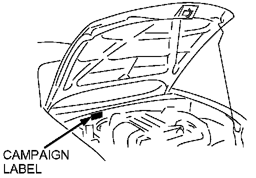2. Perform a Warranty Vehicle Inquiry using your eMDCS System and inspect vehicle for Campaign Label RECALL 1904D attached to the vehicle's hood or bulkhead. Refer to illustration.