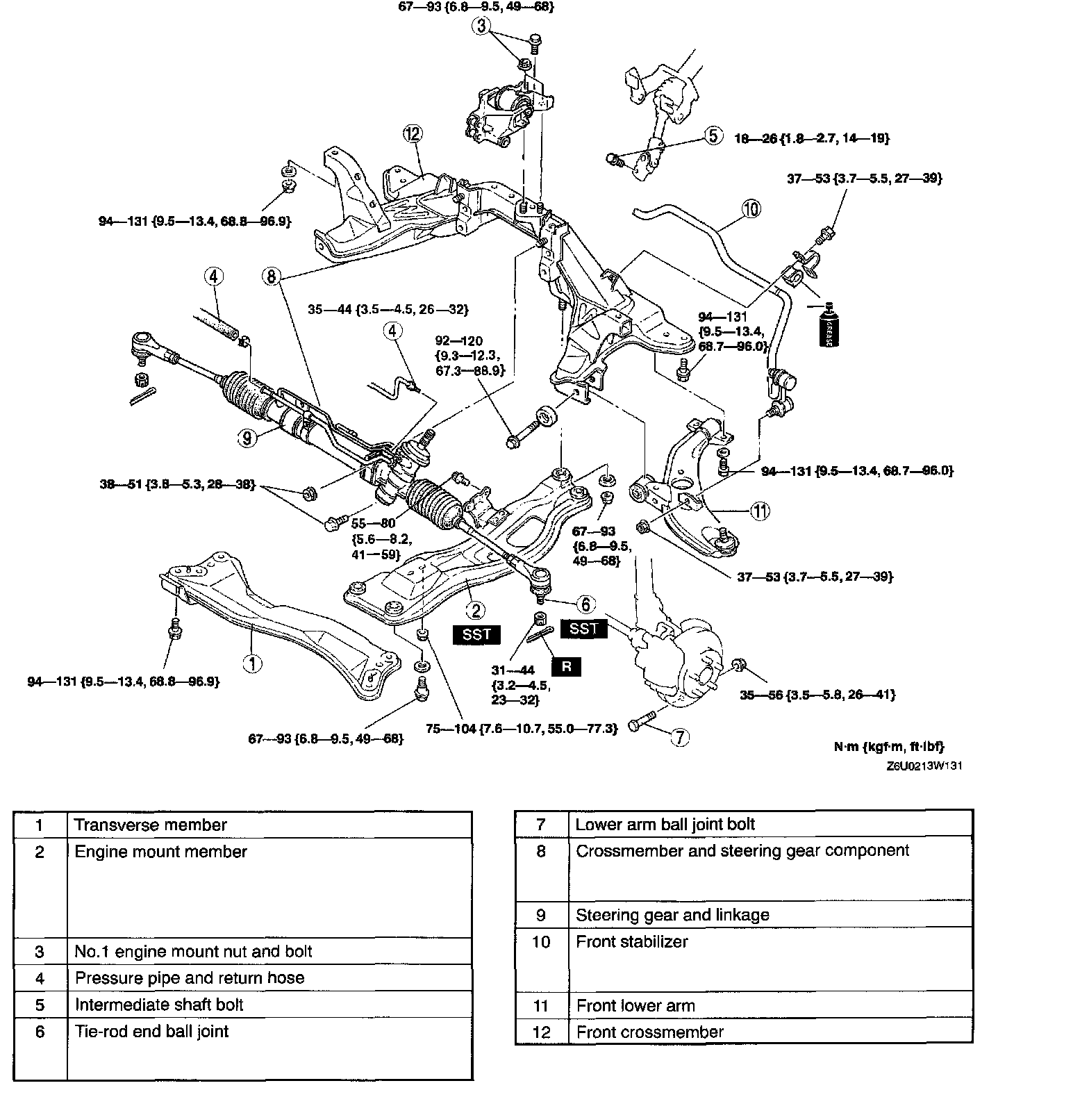 TRANSVERSE MEMBER AND FRONT CROSSMEMBER REMOVAL/INSTALLATION