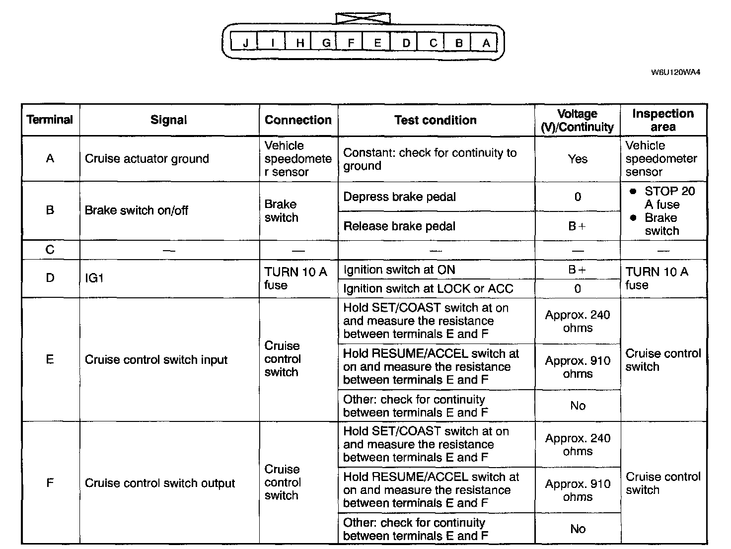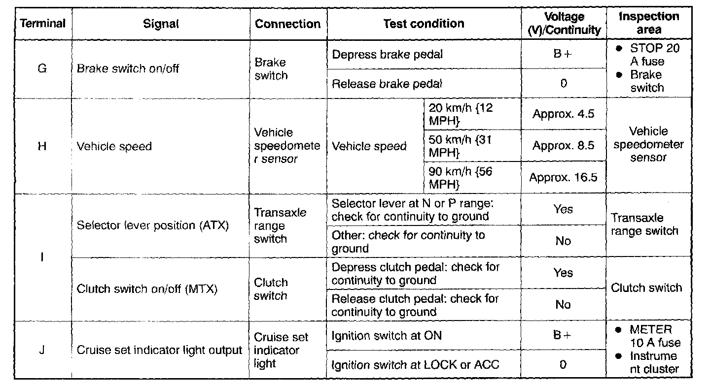 CRUISE ACTUATOR INSPECTIONTerminal Voltage List (Reference) Part 1: