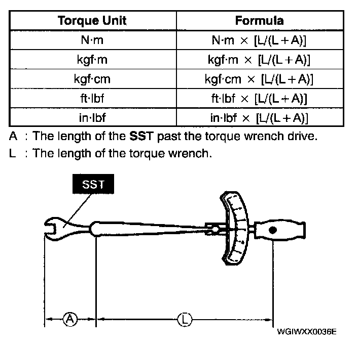 - When using a torque wrench-SST or equivalent combination, the written torque must be recalculated due to the extra length that the SST or equivalent adds to the torque wrench. Recalculate the torque using the following formulas. Choose the formula that applies to you.