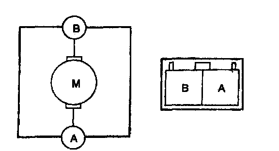 3. Connect battery positive voltage to terminal B and ground to terminal A of the blower motor and verify its operation.