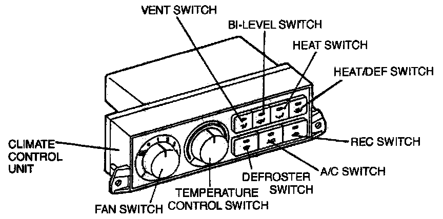 - The climate control unit controls air mixture, air intake, air flow mode and fan speed.