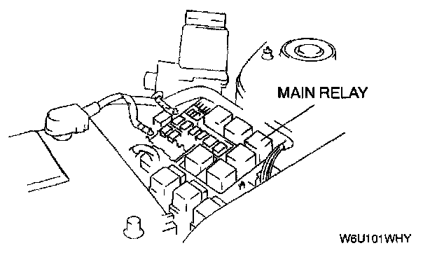 1. Verify the main relay clicks when the ignition switch is turned to ON and OFF