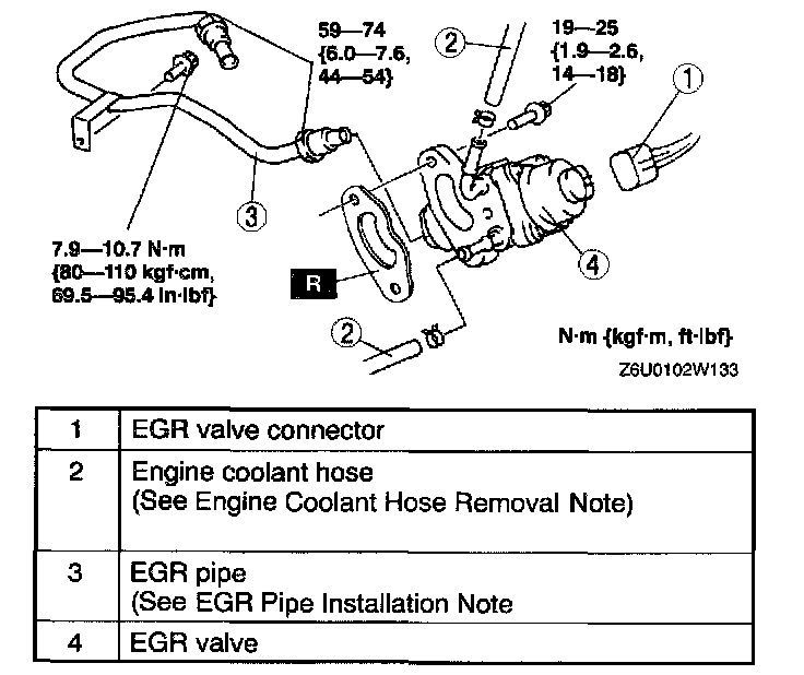 EGR VALVE REMOVAL/INSTALLATIONWARNING: Do not remove the EGR valve with the engine hot. Engine coolant in the EGR valve may badly burn or injure. Always remove and install the EGR valve when the engine is cold.